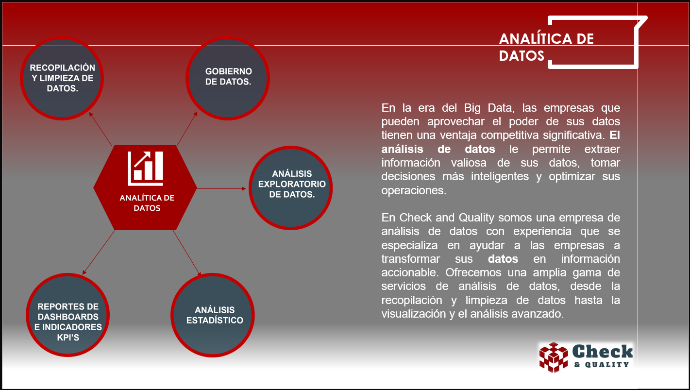 Analítica de datos Optimice sus operaciones y obtenga una ventaja competitiva con nuestros conocimientos basados en datos y capacidades de análisis predictivo.